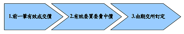 1. 採「前一筆有效成交價」:為避免因成交價異常,導致即時價格區間上、下限計算有所偏離,該成交價需符合一定檢核條件。