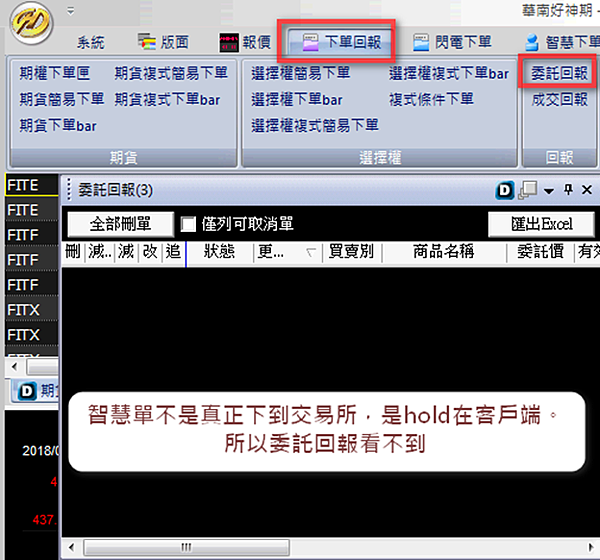 但是智慧單:是HOLD在客戶端,所以委託回報會查不到喔!